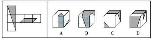 54、左边给定的是纸盒的外表面,下列哪一项能由它折叠而成?( )