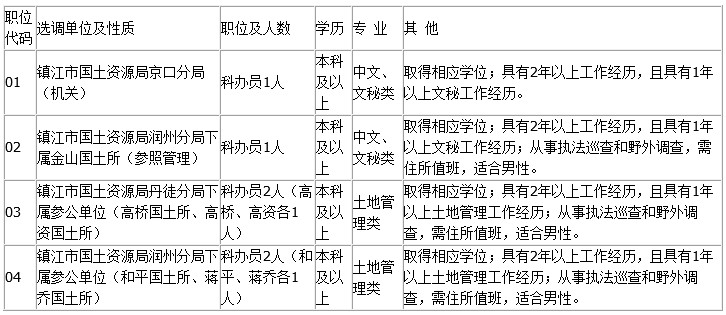 具体选调计划职位、资格条件等详见《2013年江苏省镇江市国土资源局选调计划职位表》(附件1)。