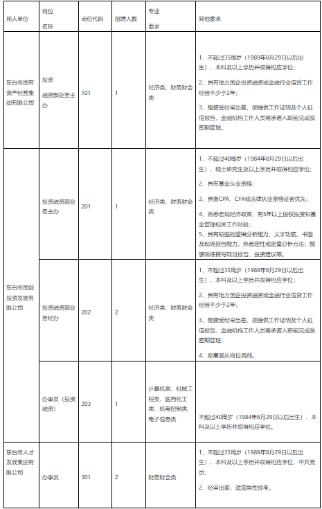 1、东台市国创投资发展有限公司投资融资部业务主办201岗