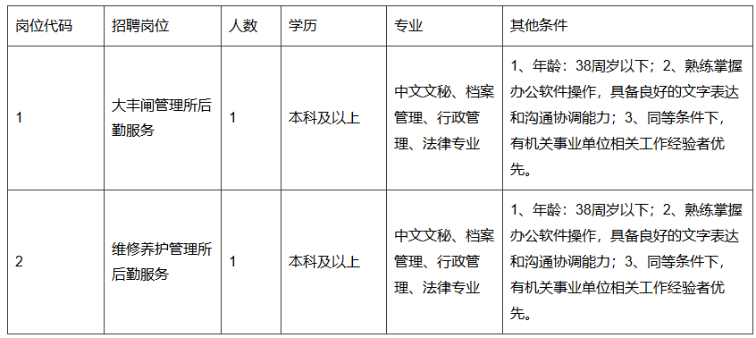 1.应聘人员须在规定时间内报名,盐城市大丰区水利局委托区汇丰人力资源管理有限公司负责报名及资格审核工作;